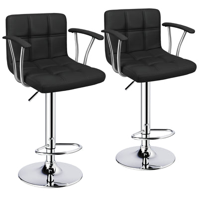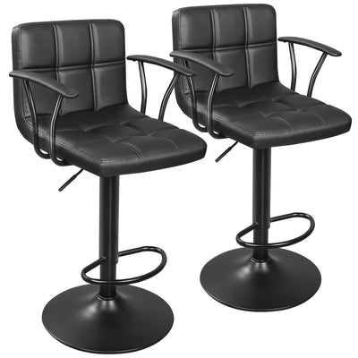 Adjustable Swivel Bar Stools with Square Back and Armrest (Set of 2)