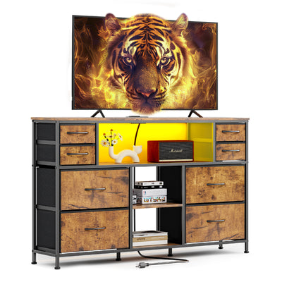Dresser Drawers TV Stand with LED Lights and Power Outlet for Living Room